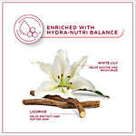 Enriched with a blend of White Lily and Licorice known to soften skin and brighten and enhance the complexion. With Hydra-Nutri Balance that locks natural moisture and provides essential hydration. Contains natural UV protector Best used post-bath or after exposure to the sun.