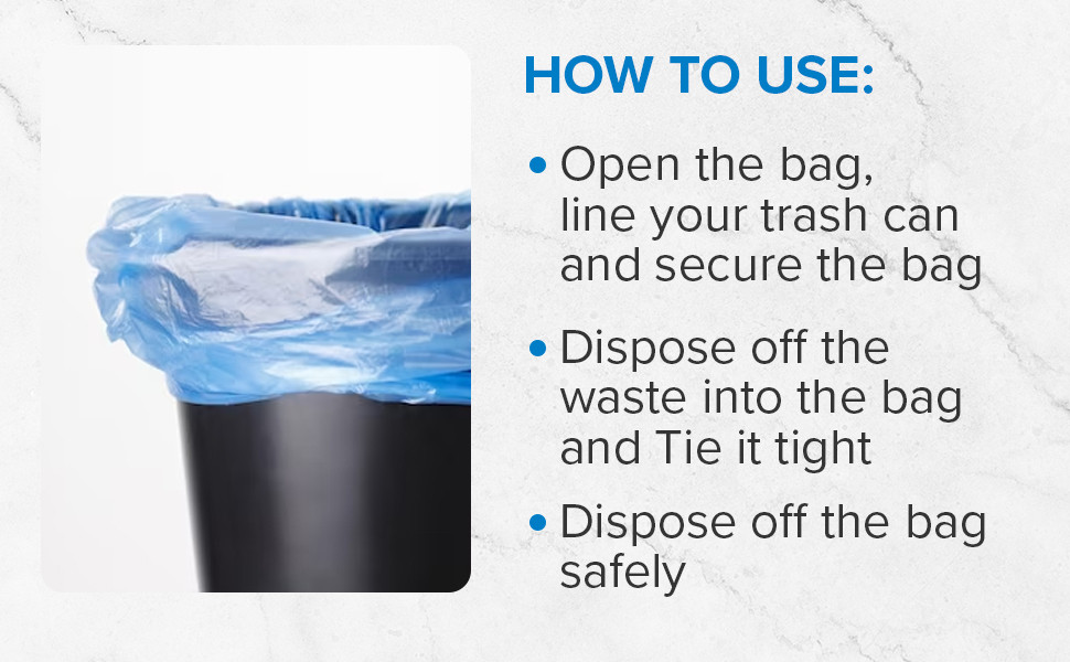 How to Use : These dustbin bags can be used in your kitchen, office, warehouses, in pantry, and can be disposed of without any problem due to their biodegradable nature. The bags are designed to degrade within a year and will be the right step towards saving the environment. These are designed to spread the word of hygiene and cleanliness by easy disposal of waste whether at home or in the office.
