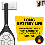 The HIT bat battery operates on the same principle as a car battery. The technology gives you a long-lasting battery that charges to the same 100% even after 500 charge cycles. The high capacity 400mAh battery provides a longer usage time before the need to recharge. A high voltage of 3500V passes through a mosquito when you touch it with the HIT bat, implying an instant kill without the need for prolonged application. To ensure safe operation, the HIT bat comes with a tri-layer net mesh. The outer layers are sized to prevent accidental electrocution, whereas the live inner mesh is separated using a plastic frame that covers the entire area of the net. The HIT mosquito killer bat comes from Godrej. On the off-chance that your bat has a manufacturing defect, it is covered by a 6-month warranty against manufacturing defects.