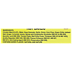 Chicken Meat 63.43%, Water, Soya Granules, Garlic, Onion, Corn Flour, Green Chilly, Iodised Salt, Ginger, Coriander leaves, Spices and Condiments, Emulsifier [INS 451 & INS 45], Ascorbic acid [INS 3], Tomato Paste, Red Chilly Puree, Thickener [INS 415 & INS 1422], Acidity Regulator [INS 33], INS 26], Flavour Enhancer [INS 621, INS 627, INS 631], Anti-Caking Agent [INS 551], Preservative [INS 25]