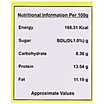 Energy (188.31kcal), Protein (13.54g), Carbohydrate(8.36g), Sugar 1.0%g, Fat 11.09g