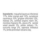 Majuphal (Quercus Infectoria) 11%, Bitter Orange Peel 10%, Symplocos Racemosus 10%, Gingiber Officinalis 10%, Triphala 3%, Certified Organic Neem 3%, Myristica Fragrans 3%, Arjuna 2% Sandal Wood Powder 3%, Yellow Zedoary 1%, Curcuma Longa 2%, Sapindus Trifoliatus 1%, Lentils And Indian Volcanic Clay.