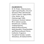 D.M Water, Aloe vera Juice, Light Liquid Paraffin, Glyceryl Stearate & PEG-100 Stearate, Capric Caprylic Triglycerides, Urea, Stearic Acid, Cetomacrogol 1000, Cetostearyl Alcohol, Sodium PCA, Sodium Lactate, Dimethicone, Sorbitol, Triethanolamine, Methylisothiazolinone, Methylparaben, Propylparaben and Phenoxyethanol, Pectin, Carbomer, Fragrance, Tocopheryl Acetate, Lanolin Anhydrous, Di-sodium EDTA.
