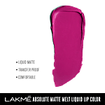 Lakme Absolute Matte Melt Liquid Lip Colour Lakme Absolute presents its first ever matte liquid lip formulation - the Matte Melt Liquid Lip Colour. Available in 12 new, irresistible shades ranging from a bright red to an intense nude, to a poppy pink, to deep brown hues, the collection now has a total of 20 gorgeous shades - with 8 already existing lip colours. This matte lip colour makes your lips look lush, matte and bold. It has a velvety matte texture that delivers a stunning suede-like finish. It is a new lightweight formula that feels feather-light on your lips & has an intense, deep and rich colour pay off in a single stroke. It has the ultimate lightweight formula enwraps lips for a long-lasting silky comfort without drying your lips. It is completely transfer proof and stays all day. The wand is specially designed to give your lips an even colour that can define the lips properly.