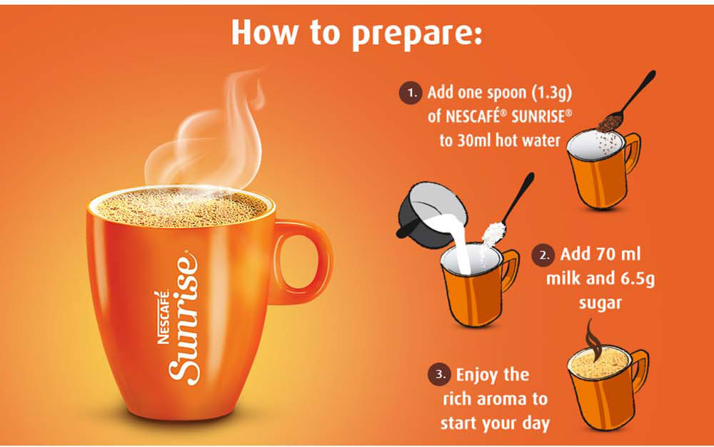 Start your day bright with the New Strong Taste Of Nescafe Sunrise! It all begins with handpicked beans from the coffee farms of South India. These coffee beans are Slow Roasted to develop the perfect aroma, which is retained using our world class expertise and captured in Rich Aroma Granules.