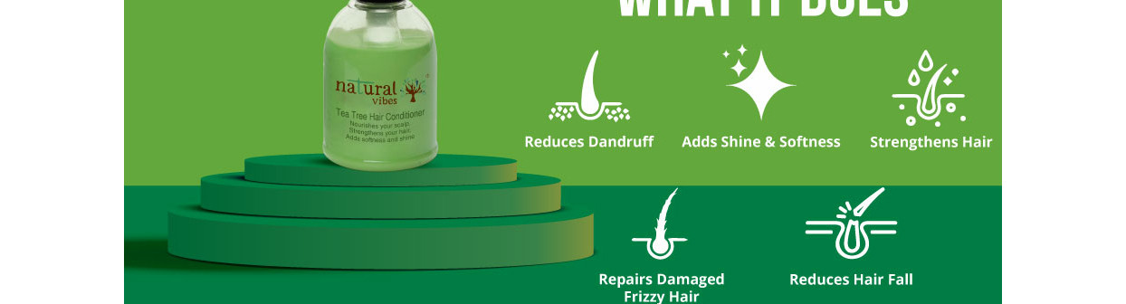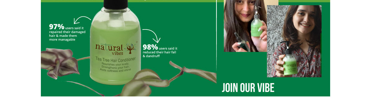 Natural Vibes Tea Tree Hair Conditioner is an ayurvedic proprietary blend enriched with Tea Tree, Bhringraj and Aloe Vera. In this day and age damaged hair, split ends and dandruff have become inevitable. However, there is no problem without a solution. We for one, always look for all answers in Mother Nature and Ayurveda.