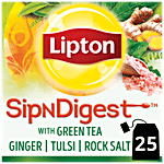 Lipton SipNDigest - With Green Tea, Ginger, Tulsi & Rock Salt, Spiced Green Tea Bags, 25 pcs (25 Bags x 1.8 g Each)