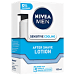 Men Sensitive Cooling After Shave Lotion calms and soothes the skin irritations after shaving. It instantly refreshes the skin leaving a comfortable cooling sensation.