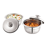 BB Home Stainless Steel Serving bowls are all-purpose serving handi with lids. Give your dining table a classic and sophisticated look. Aesthetic design with mirror polish steel finishing. Made from 202 non-magnetic stainless steel, these bowls would be your best partner while serving meals. Boost your kitchen decor and also ensure a healthy way of life by bringing home magnificent stainless steel storage. Made of premium, food-grade quality stainless steel. You can keep things like dal, vegetables, rice, curries etc. in it, because of its magnificent looks, it glorifies the table and also will impress your guests. Since this serving bowl set is economic, it could be a great add-on to any kitchen or a gift option for family and friends. These are mainly used for serving and not for cooking.