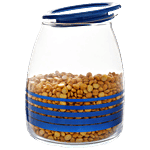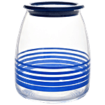 No Question askedbb home Airtight Storage Jar with Blue Lid - Transparent, Glass, Printed, Opal