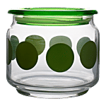No Question askedbb home Marino Airtight Storage Jar with Green Lid - Transparent, Glass, Plain, Round