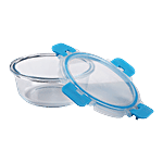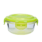 No Question askedbb home Food Container with Green Lid - Transparent, Borosilicate Glass, Plain, Round