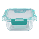 bb home Food Container with Green Lid - Transparent, Borosilicate Glass, Plain, Rectangular, 370 ml