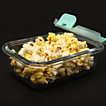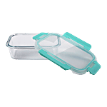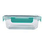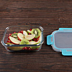 bb home Food Container with Dark Blue Lid - Transparent, Borosilicate Glass, Plain, Rectangular, 640 ml