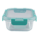 bb home Food Container with Dark Blue Lid - Transparent, Borosilicate Glass, Plain, Rectangular