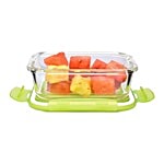 No Question askedbb home Food Container with Green Lid - Green, Borosilicate Glass, Plain, Rectangular