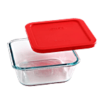 Pyrex Borosilicate Glass Baking Square Storage 4 Cup With Red Lid, 950 ml