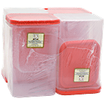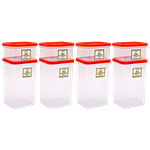 Laplast Storewell Airtight Container with Orange Lid - Transparent, Plastic, Plain, Rectangular, 8 pcs