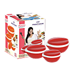 Princeware Pluto Casserole For Roti/Chapati With Plastic Lid - Red Colour, 3 pcs (530 ml + 780 ml + 1290 ml)