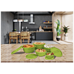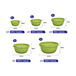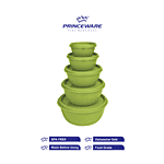 Princeware Store Fresh Bowl Storage Plastic Container - Green, With Grey Lid, 5 pcs