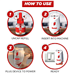 Remove the cap and insert the liquid vaporizer bottle into the specially designed electric heating machine. Plugin and switch on the heater. For better results close the doors and windows for 30 minutes initially.