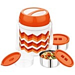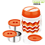 Asian Plastic Lunch Box/Tiffin Box - Diet Meal Hot Pack, Orange, 3 pcs Box