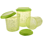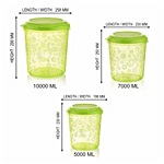 Asian Super Stylo Airtight Container Set - Green, Plastic, Printed, Round, 3 pcs