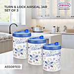 Asian Airtight Turn & Lock Jar with Spoon - Assorted Colour, Plastic, Printed, Cylindrical, 600 ml (Set of 3)