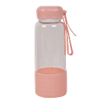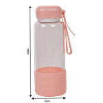 DP Printed Glass Water Bottle With Silicon Cover At Bottom - Pink, BB1303, 450 ml