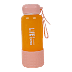 No Question askedDP Printed Glass Water Bottle With Silicon Cover At Bottom - Pink, BB1303