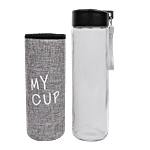 DP Glass Water Bottle With Removable Fabric Cover - Grey, BB1318, 500 ml