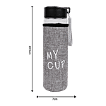 DP Glass Water Bottle With Removable Fabric Cover - Grey, BB1318, 500 ml