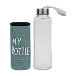 DP Glass Water Bottle With Removable Fabric Cover - Green, BB1320, 400 ml