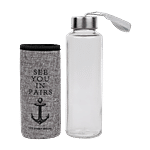 No Question askedDP Glass Water Bottle With Removable Fabric Cover - Grey, BB1320