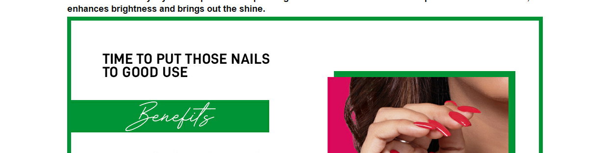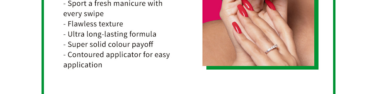 We’ve used a formula that improves colour reflection, enhances brightness and brings out shine—time to put those nails to good use.