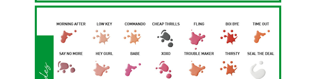 Seal the Deal is a transparent topcoat. The magic that keeps the gang together. Our glossy nail polishes promise super long-wear time, guaranteeing endless nights of fun with your digits—whether it’s in real-time or some good ol’ sexting. Nothing sets the mood quite like the smooth wet finish of glistening bright nails.