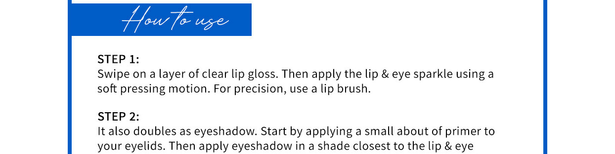A little bling goes a long way to make you the queen of the night. We're bringing the runway into real life with colour-saturated grown-up glamour, via our LIT Lip & Eye Sparkles.