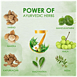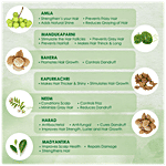 Amla, Bahera, Brahmi, Harar, Neem, Kapurkachri, Henna, Aloe Vera.