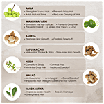 Amla, Bahera, Brahmi, Harar, Neem, Kapurkachri, Henna, Bhringraj.