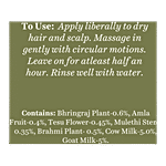 This intensive formula features pure bhringraj, butea frondosa, amla and centella blended with coconut oil and the healthfulness of goat milk to help treat alopecia and other causes of hair loss. It nourishes the scalp and strengthens hair strands to encourage fresh growth and help diminish greying.