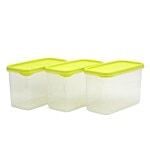 Mastercook Storage Container - Green, Plastic, Plain, Rectangular, 1.5 L (Set of 3)