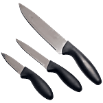 Triones Kitchen Knives Set has 3 pieces of knives made with Stainless steel with hollow ground edges. These knives have a soft-grip contoured handle and come with one year warranty.