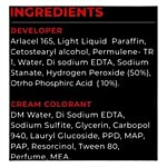 Purified Water, Di Sodium EDTA, Sodium Sulfite, Glycerine, Carbopol 940, Lauryl Glucoside, PPD, MAP, Resorcinol, Tween 80 (Yellow Musk), Perfume, MEA