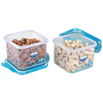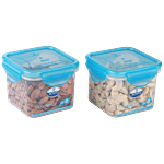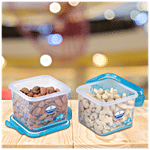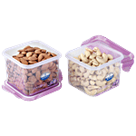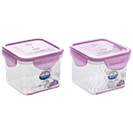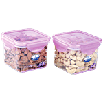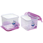These plastic containers can be used to store a variety of food products. The base has a distinguished checked design and the lids are in assorted colours. They are available at highly economical prices.