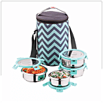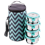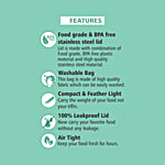 NanoNine Lunch Box/Tiffin Set Stainless Steel with Steel Lid & Bag - Duo, 4 pcs
