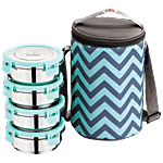 NanoNine Lunch Box/Tiffin Set Stainless Steel With Steel Lid & Bag - Duo, 4 pcs