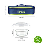 Borosil Lunch Box/Tiffin Box - Borosilicate Glass, Round, High Quality, Sturdy, 400 ml (Set of 2)