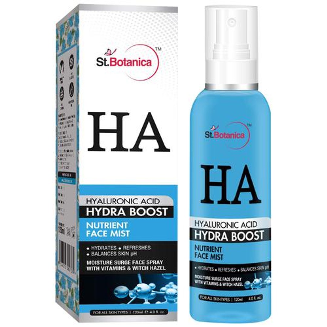 StBotanica Hyaluronic Acid Hydra Boost Nutrient Face Mist - Vitamins & Witch Hazel, Refreshes, Balances Skin pH, No Parabens & Mineral Oil, 120 ml