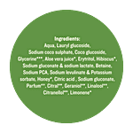 Aqua, Lauryl Glucoside, Sodium Coco Sulphate, Coco-Glucoside, Glycerine***, Aloe Barbadensis Juice*, Erythritol, Hibiscus Rosa Sinesis Flower Extract*, Sodium Gluconate & Sodium Lactate, Betaine, Sodium Pca, Sodium Levulinate & Potassium Sorbate, Mel*, Citric Acid, Sodium Gluconate, Parfum**, Citral**, Geraniol**, Linalool**, Citronellol**, Limonene**.