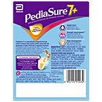 Pediasure 7+ is a specialized nutritional drink that provides complete, balanced nutrition for growing children 7 years, above. Scientifically designed with various vital nutrients along with the goodness of Oats and almonds to support height gain, strength improvement and brain development. with high-quality protein, Pediasure offers optimum nutrition to children 7 years and above to maximize growth, strength during the period of second growth spurt. Bones can grow up to 1. 5 times from 7 to 14 years. Pediasure 7+ is specifically formulated with essential nutrients like Zinc, Iron, Iodine, Protein, Calcium and Vitamin D to support this growth /height gain. Children engage in various day-to-day activities that require physical strength. Along with a diet, Pediasure 7+ helps in meeting nutritional requirements in 7+ children. This nourishing Nutrition Drink supports bone strength with key nutrients all known to improve bone mineral density and muscle mass. Pediasure 7+ also offers crucial nutrients like Folic Acid, Vitamin B12, Zinc iron, and iodine to support brain development. Kids like the taste. This specialized nutritional drink is available in chocolate and vanilla flavours.